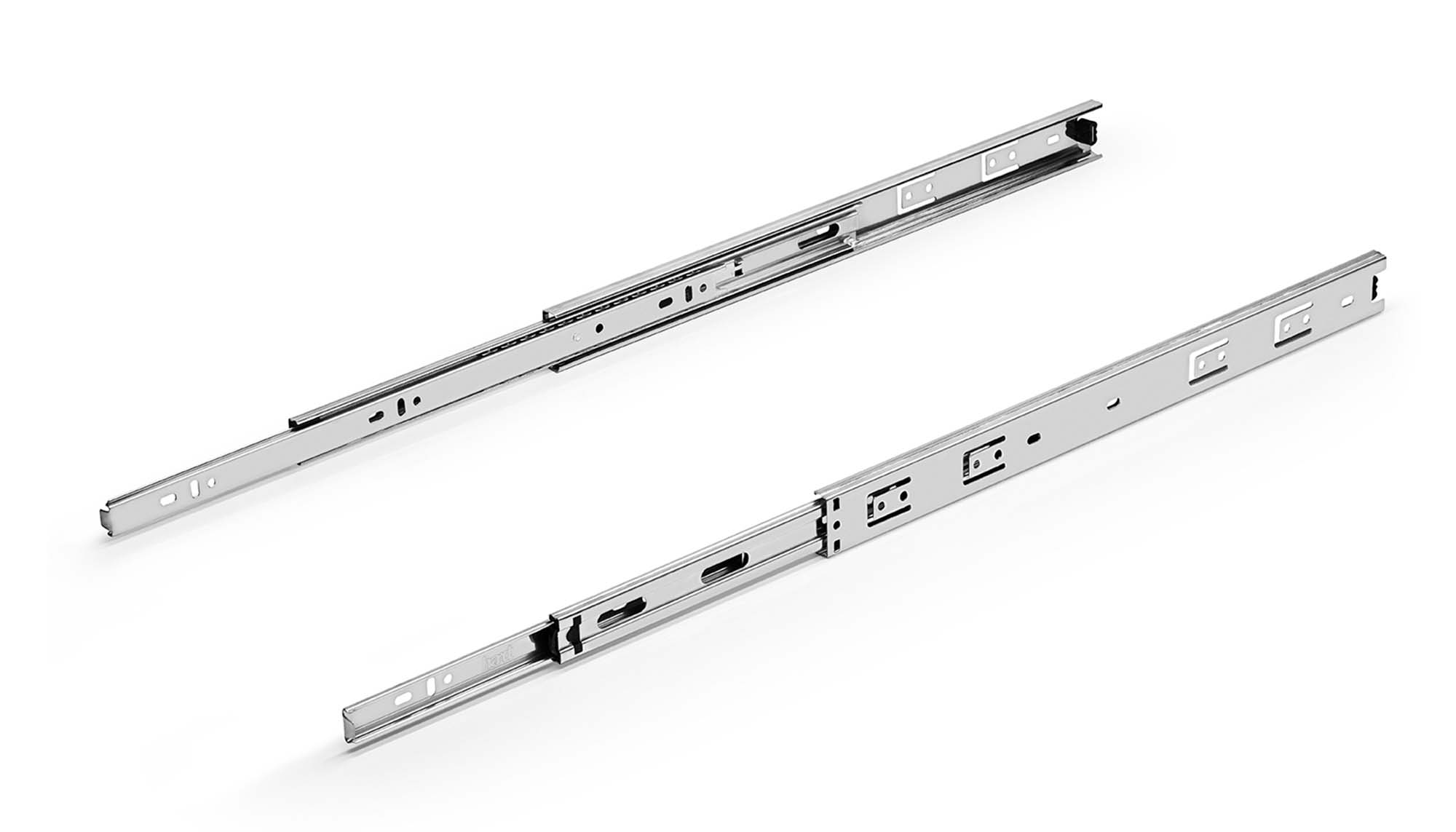 A Corrediça Telescópica H35 da Hardt é a versão “Light” ou estreita das corrediças telescópicas. Ela é a escolha ideal para móveis menores ou onde o espaço de instalação é mais restrito, oferecendo a mesma funcionalidade de abertura total, mas com um perfil mais discreto.