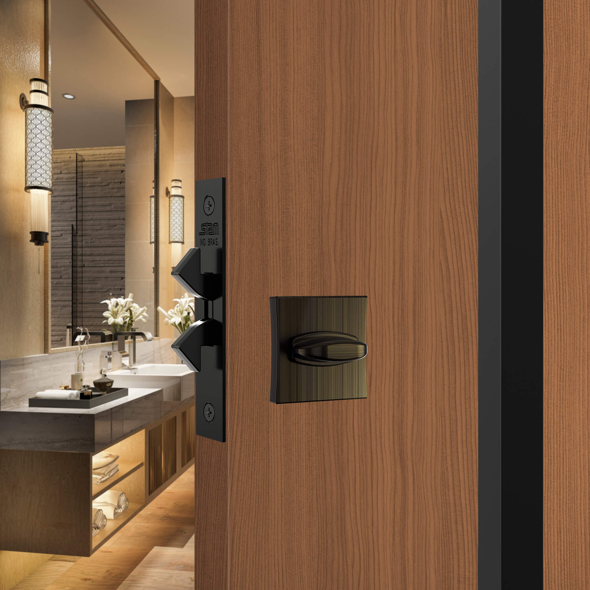 A Fechadura Stam 1006S combina a segurança robusta da marca com um design moderno de rosetas quadradas. Ideal para quem busca renovar o visual das portas internas ou de entrada com um toque de sofisticação e linhas retas.