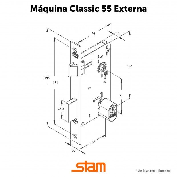 Acessórios: Tranqueta, chave reserva, maçanetas, rosetas, contra testa
