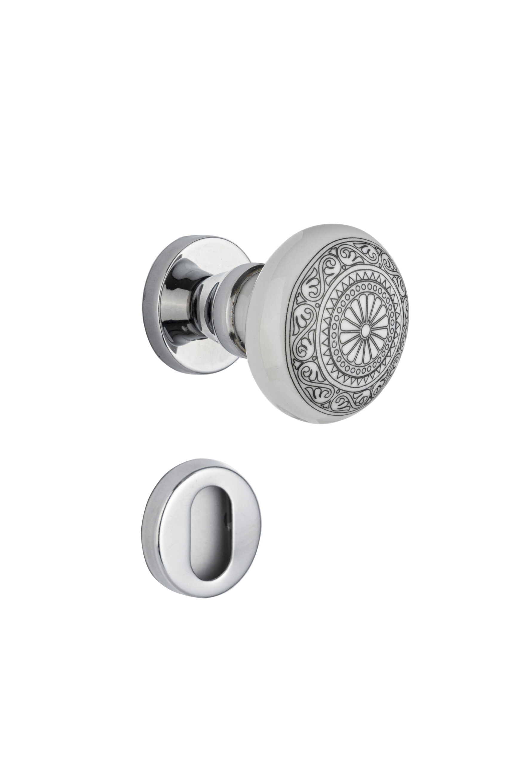 MAÇANETA PARA PORTA TIPO BOLA PORCELANA ESTAMPA 25 (MANDALA) EM LATÃO ANTIQUE MANIGLIA FAVORITA
