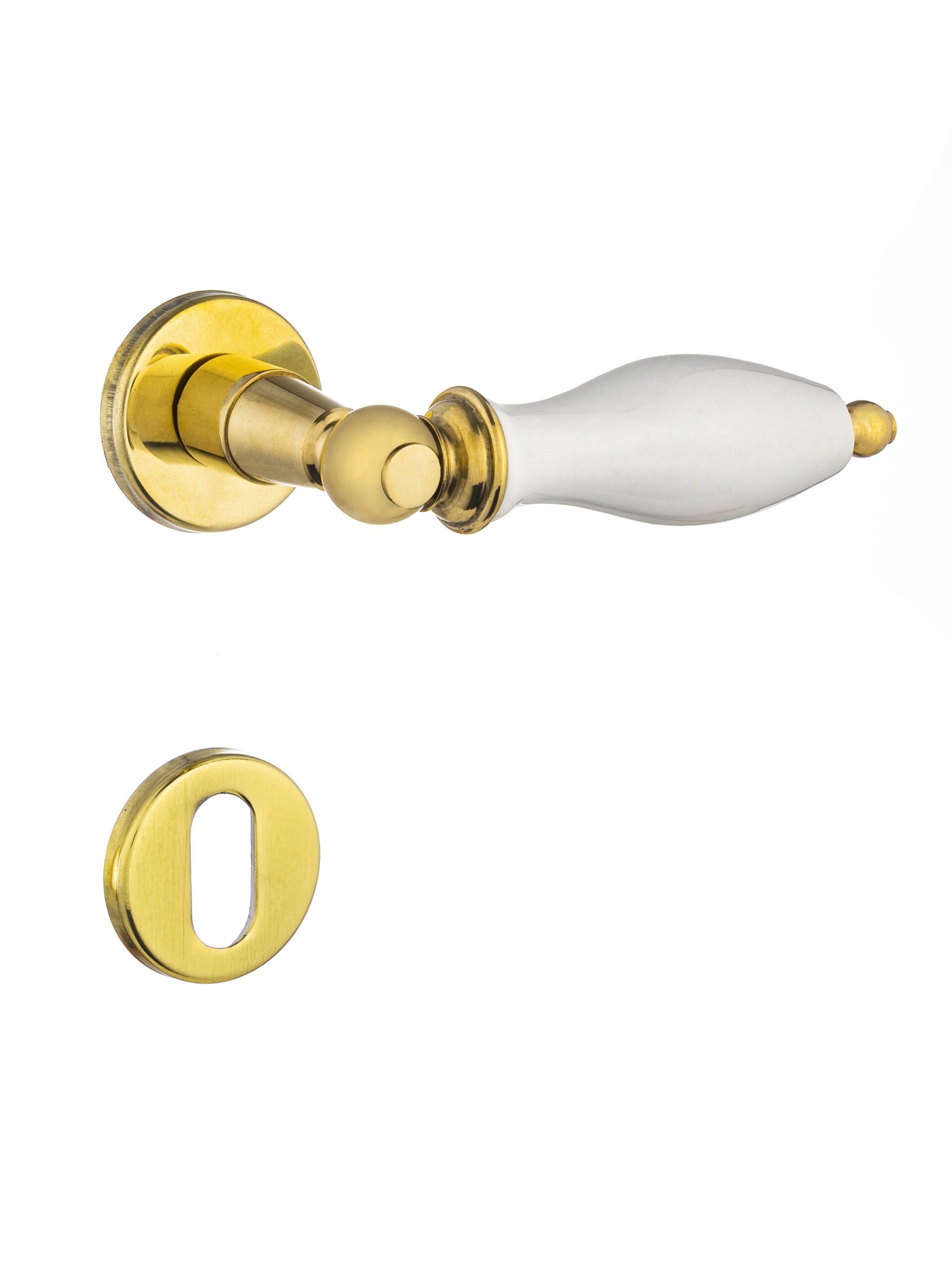 MAÇANETA TIPO ALAVANCA COM CABO EM PORCELANA COM ESTAMPA 19 LATÃO POLIDO MANIGLIA FAVORITA