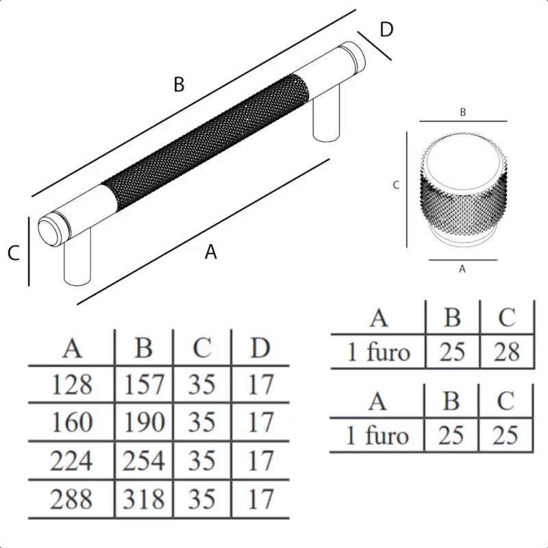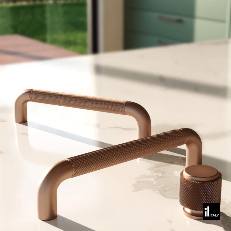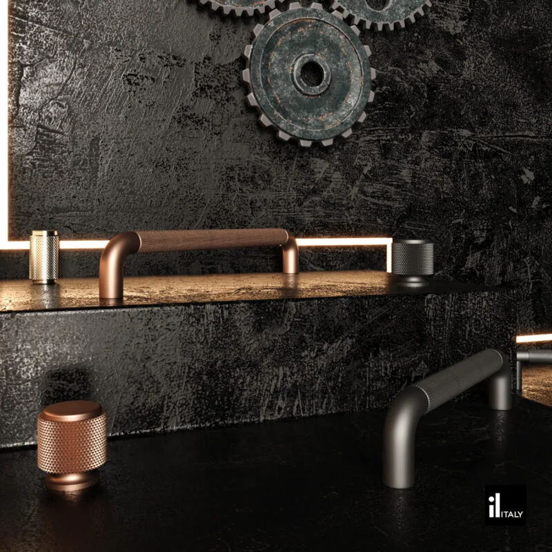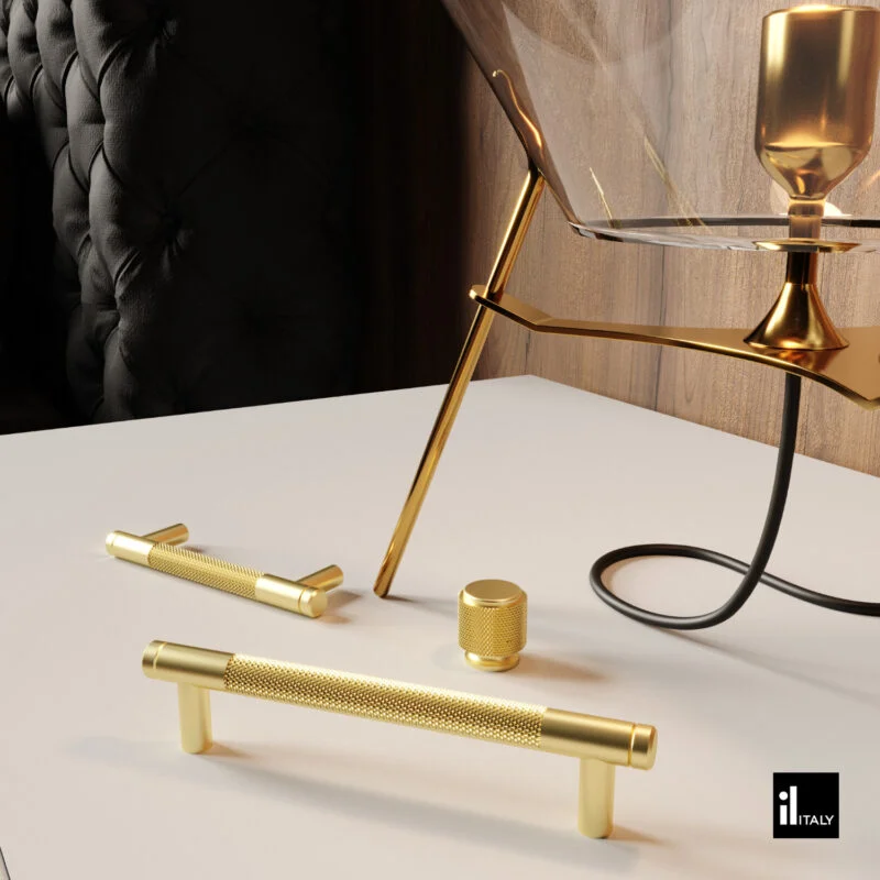 O Puxador Zigrinato da Italy Line é sinônimo de personalidade e elegância tátil. Com sua icônica textura recartilhada e acabamento Dourado, este modelo tipo “ponto” é ideal para quem busca um design industrial refinado. Perfeito para destacar gavetas e armários com um toque de luxo e modernidade.